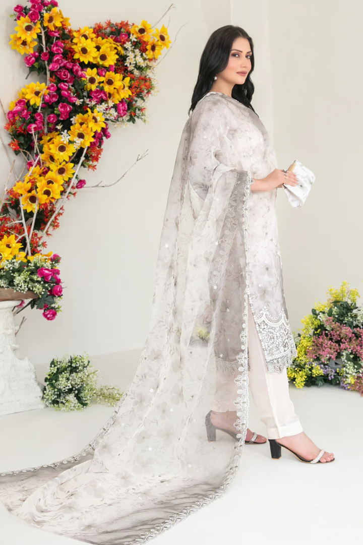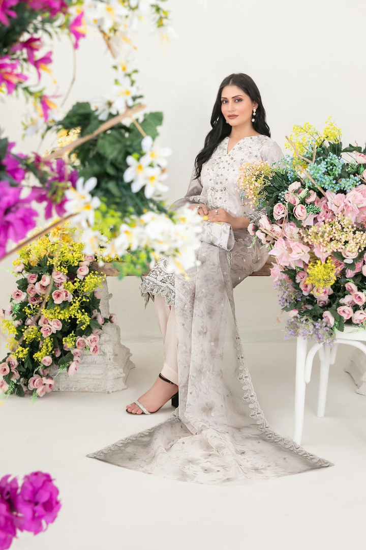 - Fancy Heavy Embroidered Organza Shirt with embellishments & Digital Printed Silk Inner