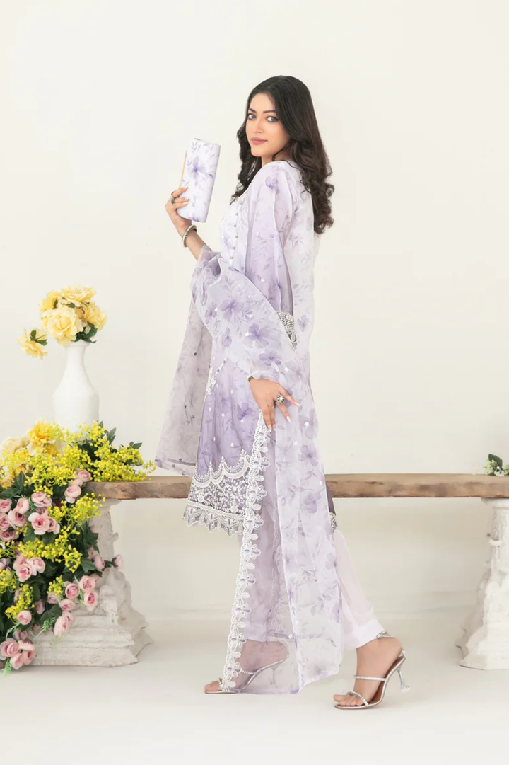 - Fancy Heavy Embroidered Organza Shirt with embellishments & Digital Printed Silk Inner