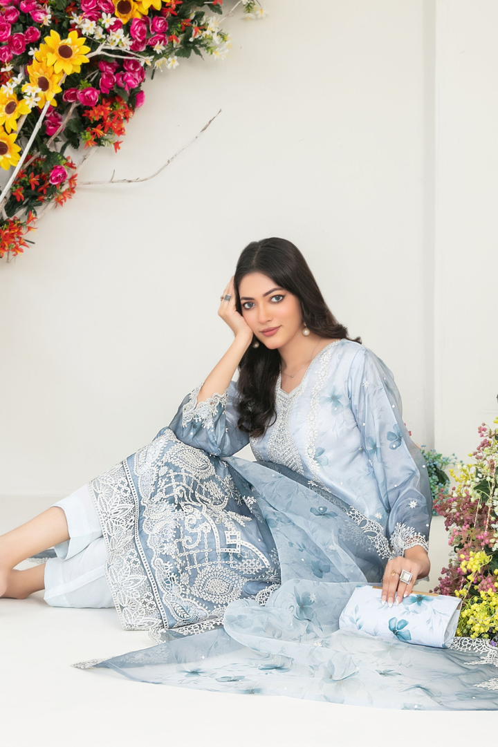 - Fancy Heavy Embroidered Organza Shirt with embellishments & Digital Printed Silk Inner