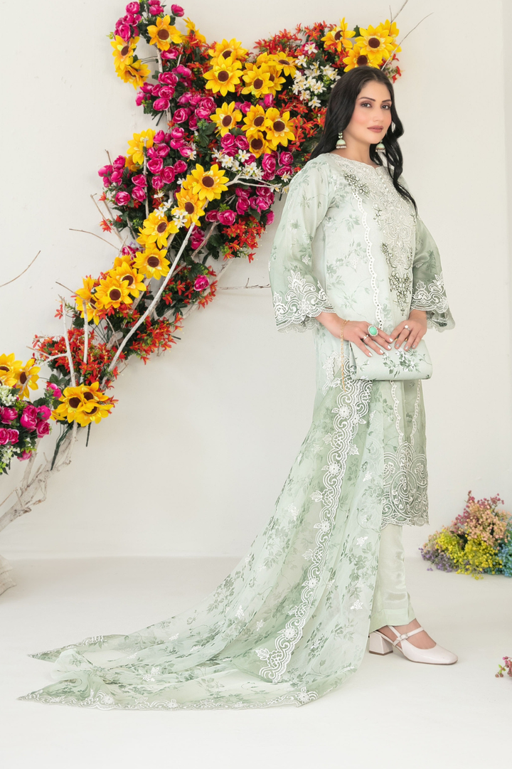 - Fancy Heavy Embroidered Organza Shirt with embellishments & Digital Printed Silk Inner
