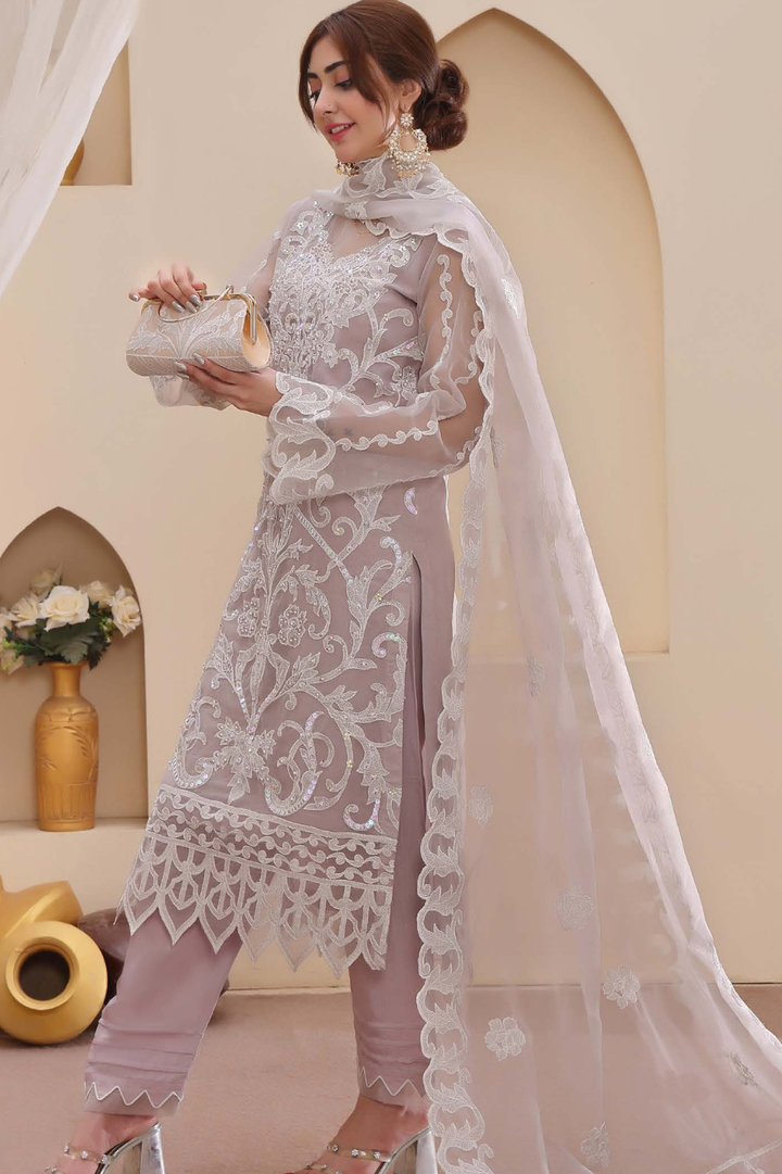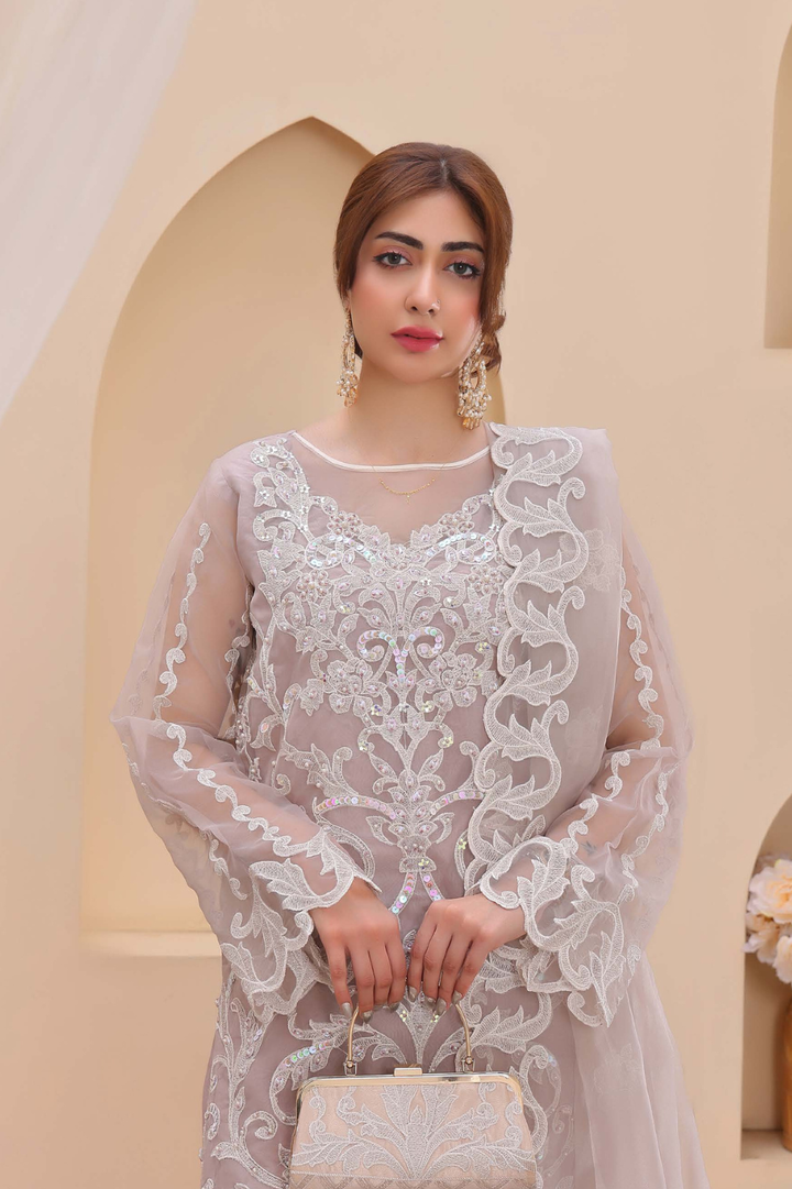 - Fancy Heavy Embroidered Organza Shirt with embellishments & Digital Printed Silk Inner
