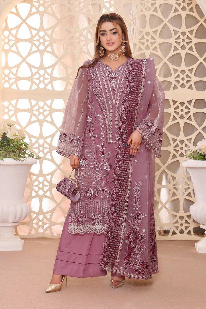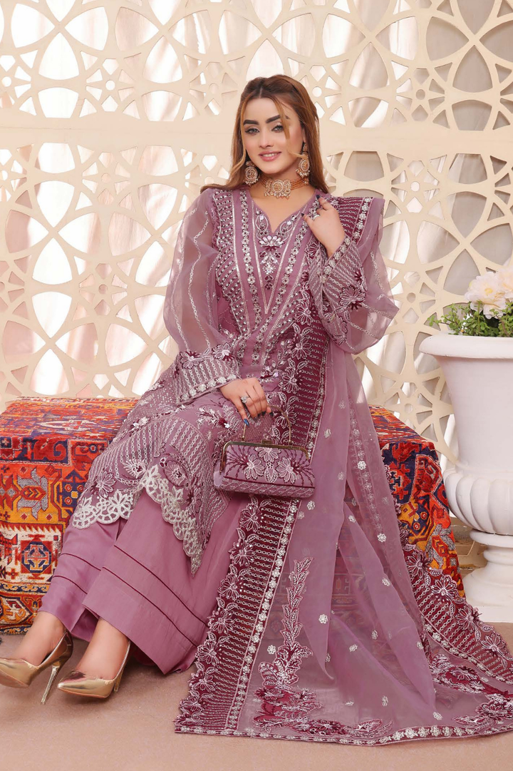- Fancy Heavy Embroidered Organza Shirt with embellishments & Digital Printed Silk Inner