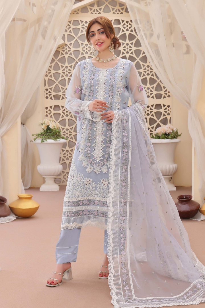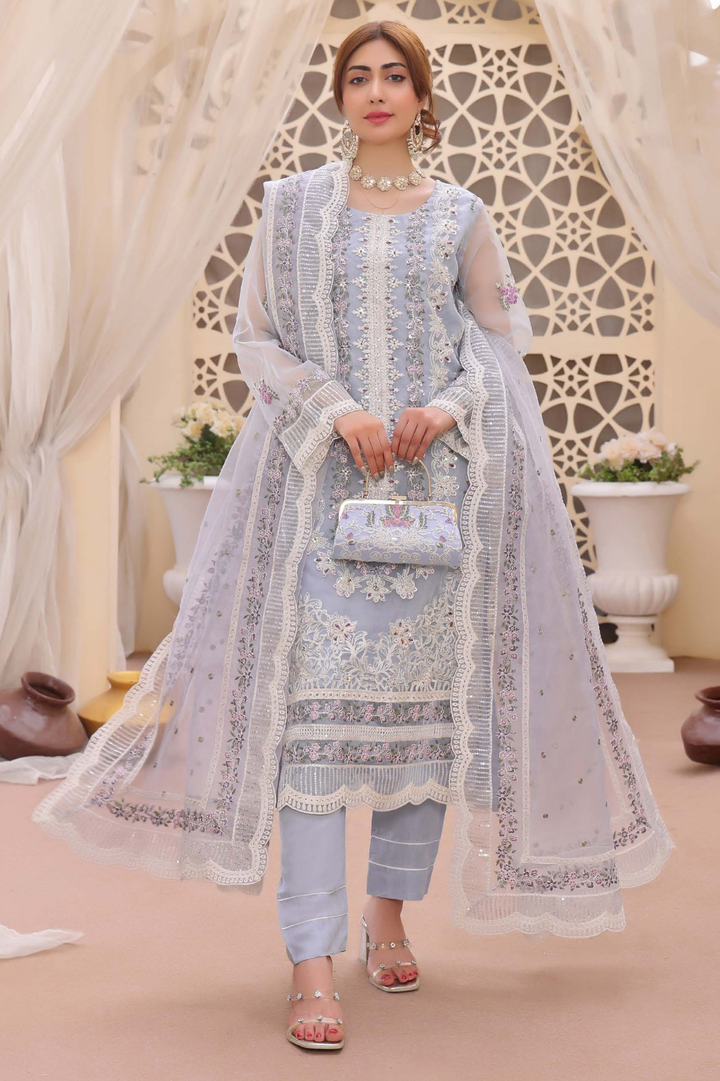 - Fancy Heavy Embroidered Organza Shirt with embellishments & Digital Printed Silk Inner