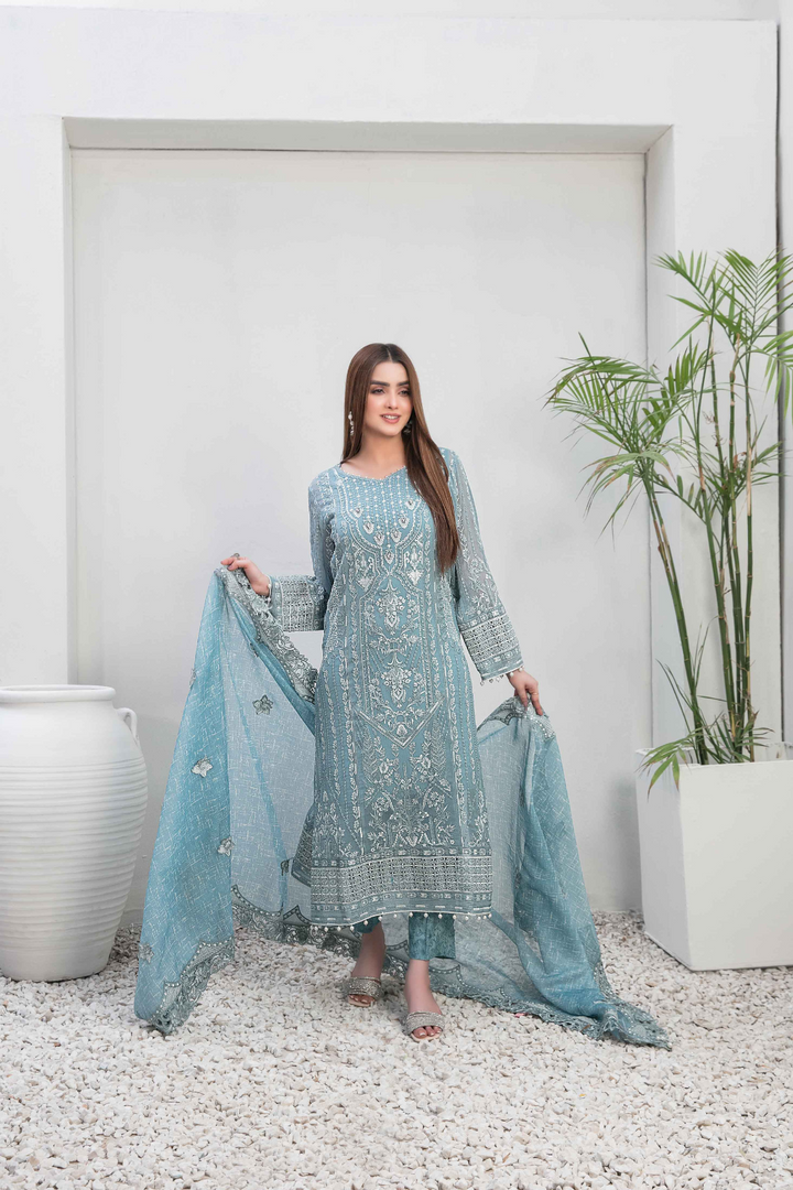 Fancy Heavy Embroidered Chiffon Shirt Designs with embellishments