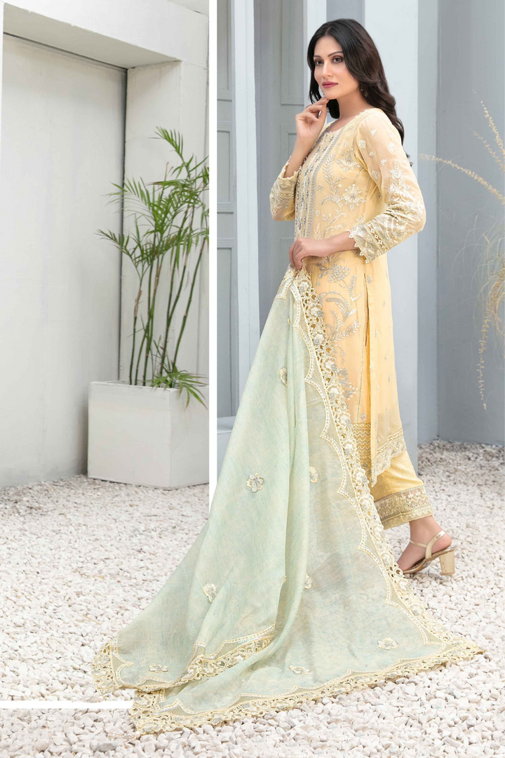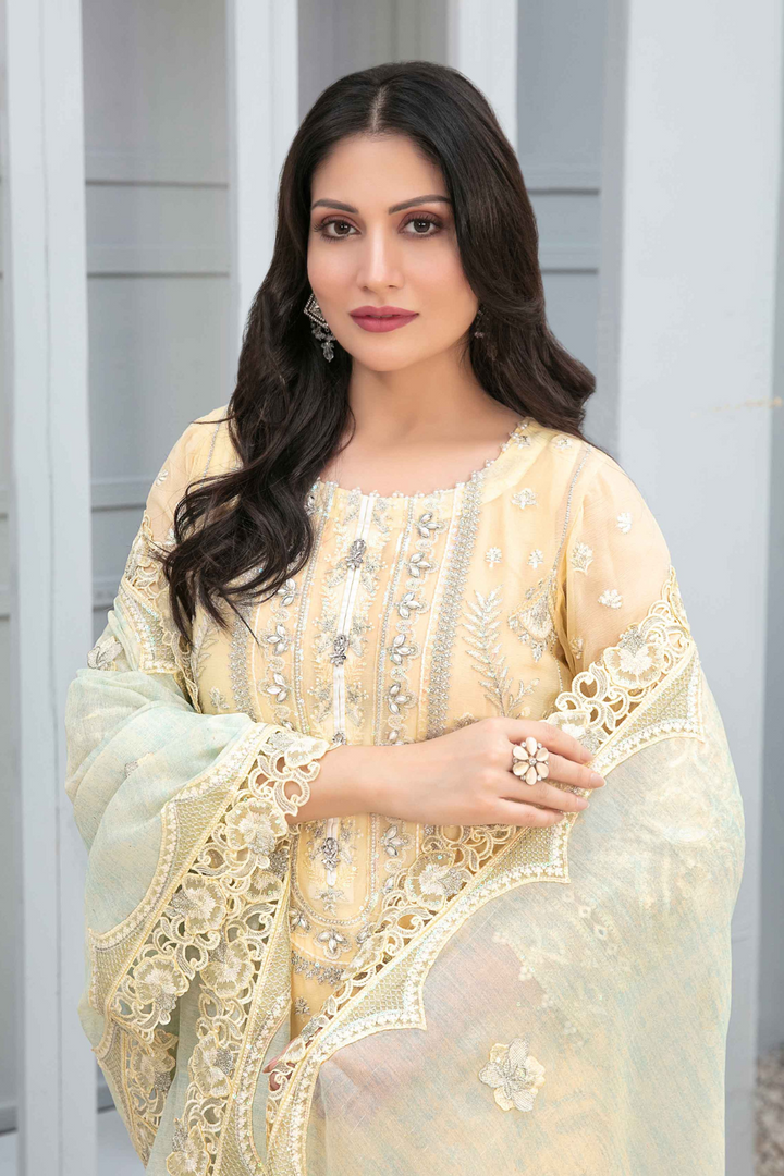 Top : Fancy Heavy Embroidered Chiffon Shirt With Exclusive Embellishments