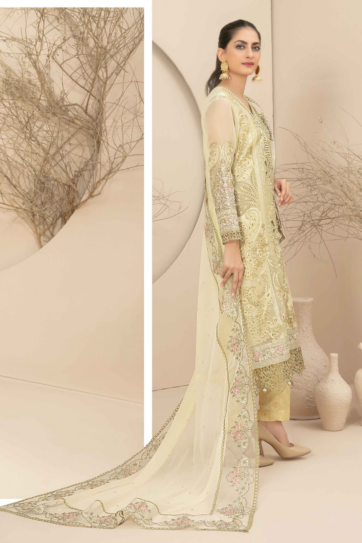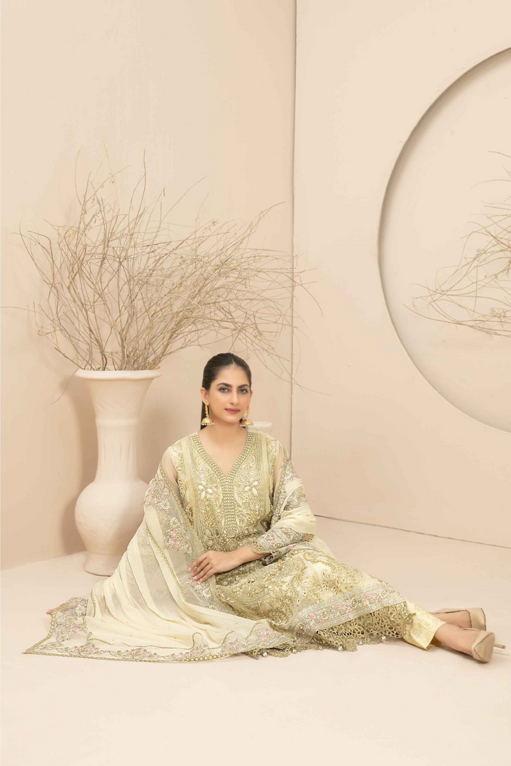 Stitched Fancy Heavy Embroidered Organza Shirt designs with Exclusive Embellishments