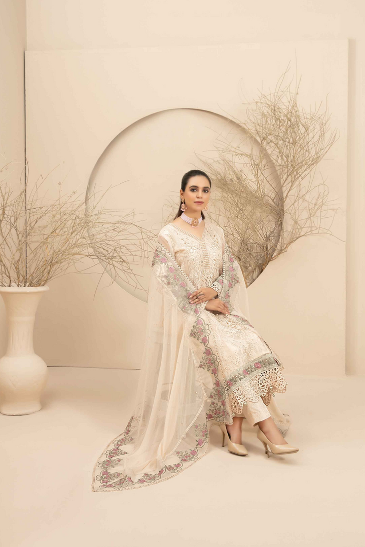 Stitched Fancy Heavy Embroidered Organza Shirt designs with Exclusive Embellishments