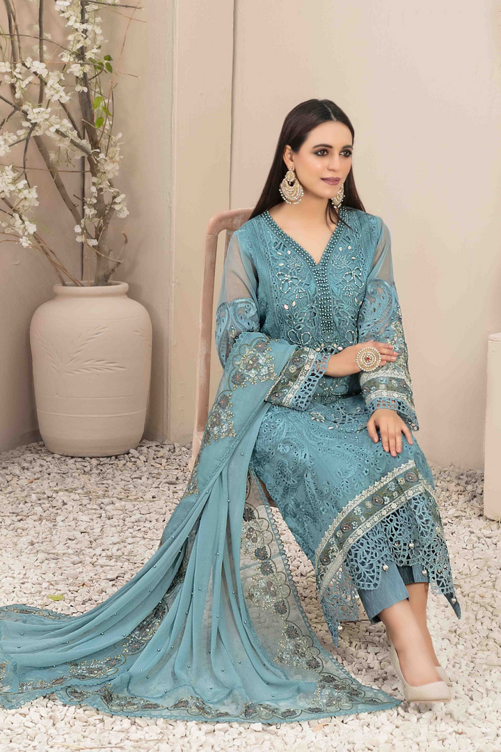 Stitched Fancy Heavy Embroidered Organza Shirt designs with Exclusive Embellishments
